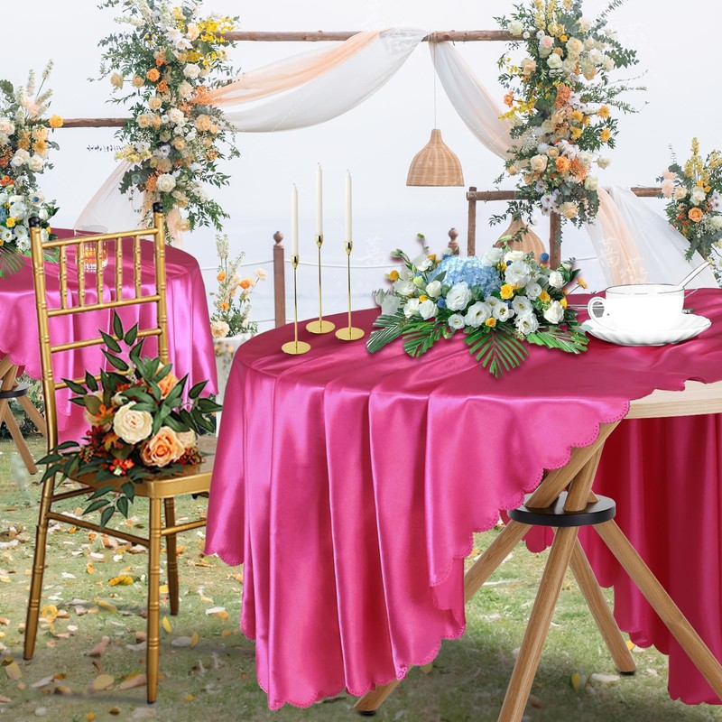 -- Luxury satin tablecloths are silky and soft, adding elegance and luxury to your wedding.