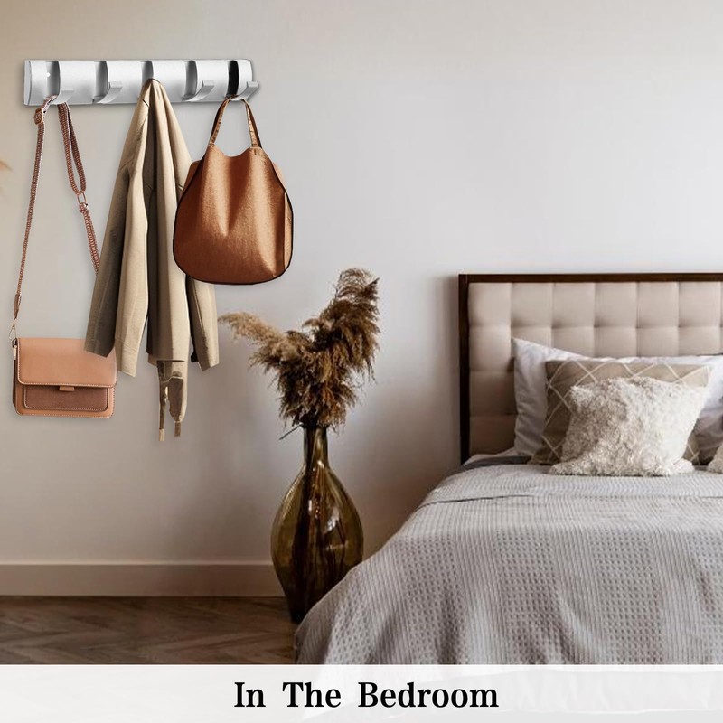 - 【Hidden Hook Design】This silver coat rack boasts a hidden hook design. When not in use, the hooks can be folded back into the rack, preventing accidental bumps and injuries. This design also minimizes friction between the hook and the door, providing a cleaner, more organized look. It is an ideal solution for small living spaces like entryways and behind doors.