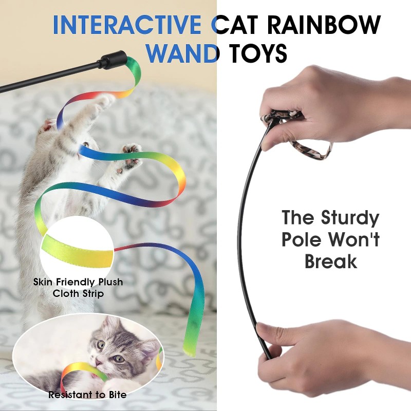 【Perfect Gift Choice】Our cat interactive rainbow wand toys are an ideal gift for the pet lover or your cat which can bring more fun to your cats and the cat lovers. Enjoy hours playing with your cat in a super fun way with just a flick of your wrist! What a great way to keep your cat healthy and fit for life!