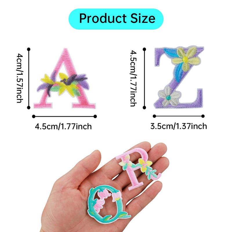 - 【Repair and DIY Decor】Measuring between 3-4.5cm/1.18-1.77 inches in length, our cute colorful patches are perfect for repairing clothes or adding decorative accents to your outfits. Conceal flaws or holes with charming flower alphabet patches. Get creative and design your own personalized clothing or accessories using these patches. The bright and captivating colors will infuse an extra dose of charm into any item.