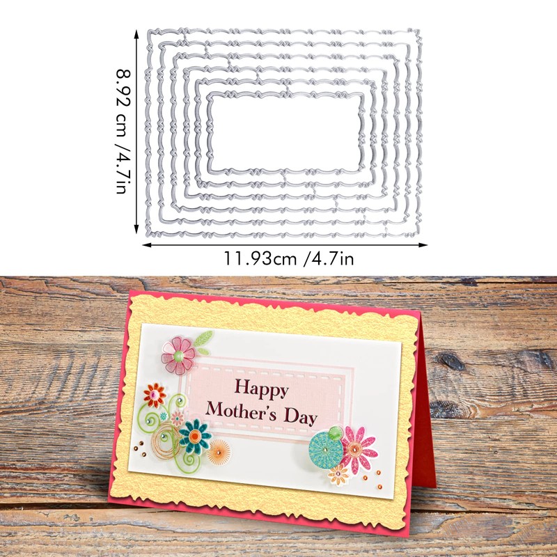 - 【Makes Great Stencils】Put the mold on the card to draw shapes and cut patterns of different sizes to get a sense of layering, and then you will have a beautiful and stunning 3D design. This beautiful design is a stunning way to impress your loved ones, adding a wonderfully intricate feature to embellish your papercraft projects. Rectangle frame metal cutting dies will be perfect for cards celebrating a range of occasions. You'll have the perfect die cut design to add to your papercraft masterpieces!