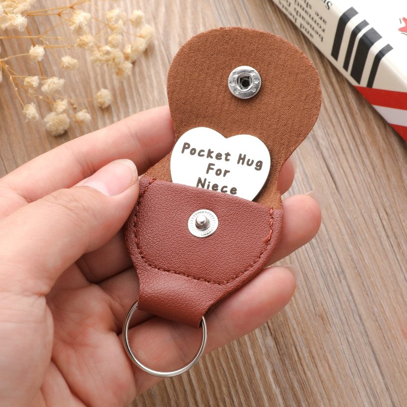 - Double-Sided Engraved Pocket Hug Gifts: Our double-sided token's front: "Pocket Hug for Niece"; The back: "Never Forget That I Love You. I Hope You Believe In Yourself As Much As I Believe In You." Motivational & Cheer Up gifts, even if you're not around, have this pocket hug token to let them keep a positive and optimistic attitude.