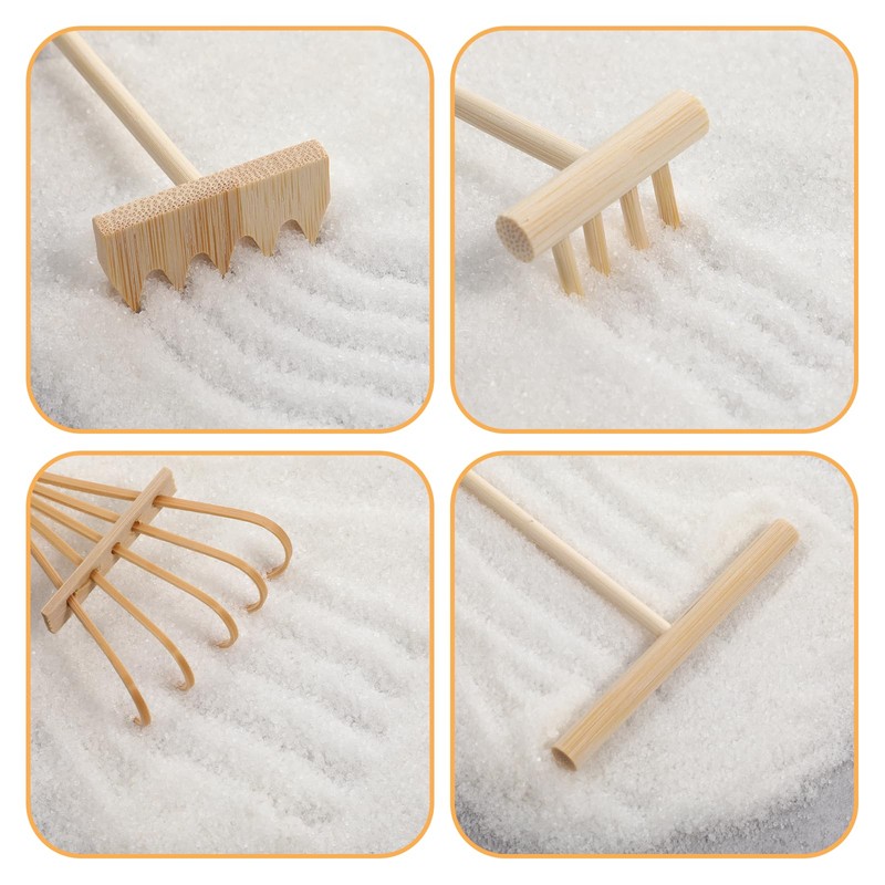 - Practical tools: mini zen garden rakes can help arrange sand table for decoration. Lines, flowers, circles, waves and other graphics in the Zen garden can be completed with these mini bamboo rake tools