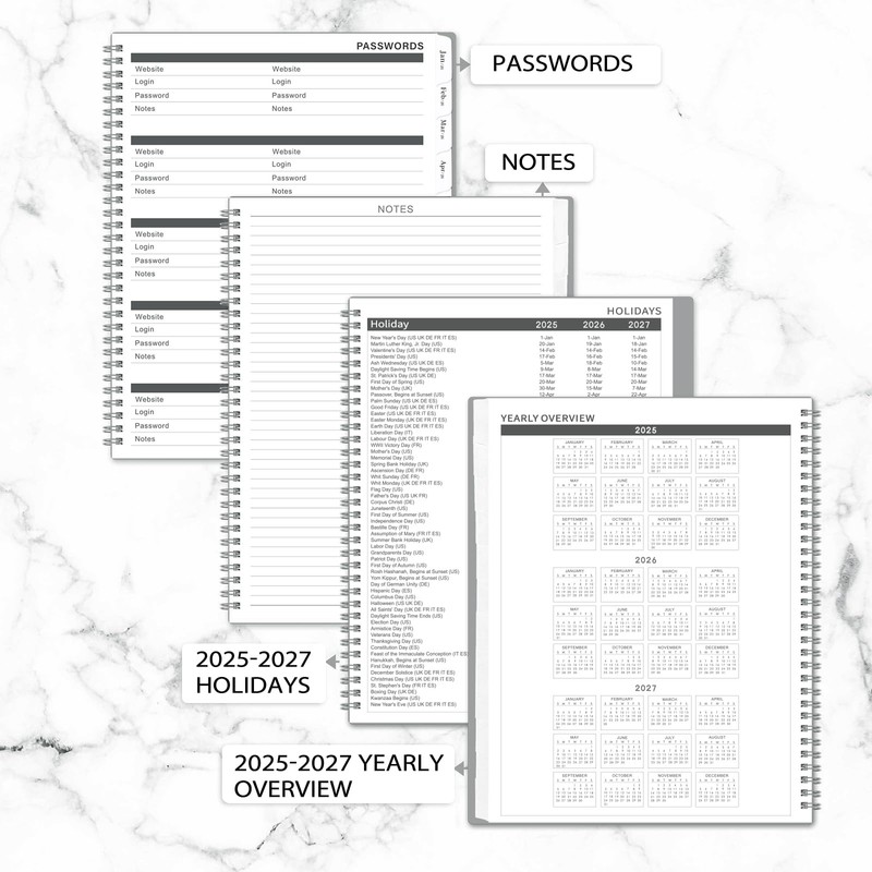 • 2 Yearly Planner - Sturdy and elegant water proof hardcover is perfect for school, office & home. You never know what you will become in two year, if a monthly only planner is enough for you, just go for this pretty 2025-2027 yearly monthly planner, and let this planner to guide you achieve your goal and become the best version of yourself!
