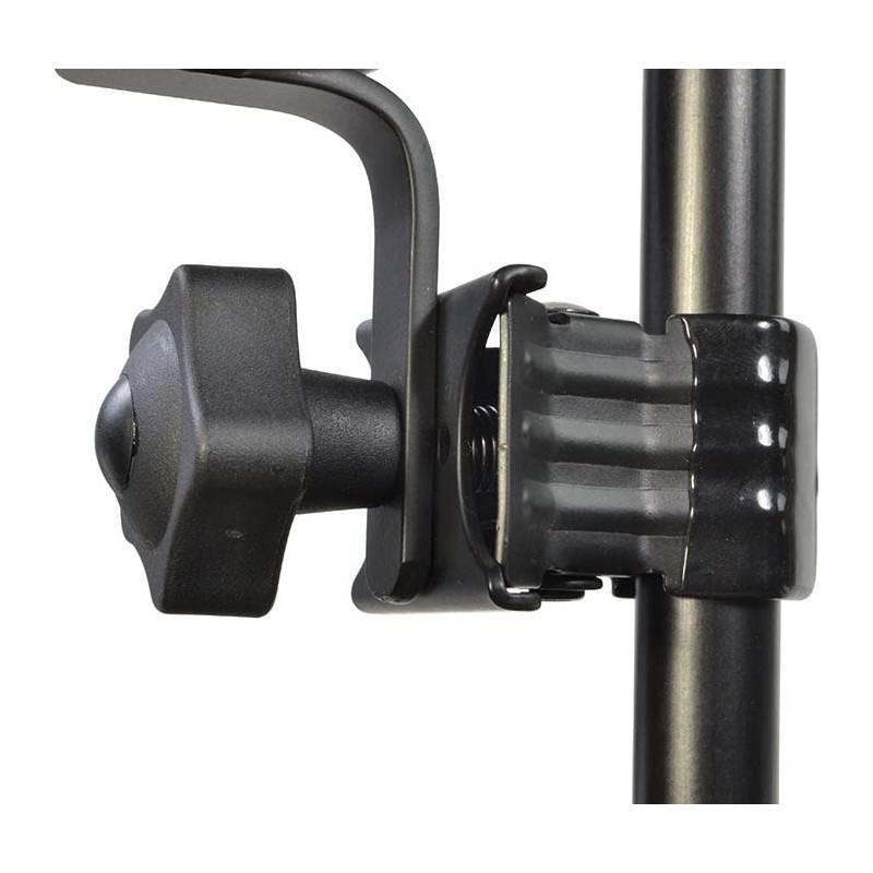 An ultra-tough clamp on microphone holder ideal for performers needing to mic up a guitar or percussion instrument whilst singing. The clamp fits most microphone holders and can be attached to any upright stand between 18mm and 45mm.