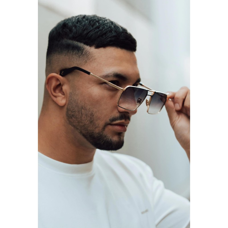 • 100% Steel Frame & Titanium Nose Pads Andrew Tate Style Inspired Gold with Gloss Black Front Trim Acetate Temple Tips with Logo Heavy Duty Steel Hinge Design Jaques Black Gradient Lenses Top G Style Protective Box LENSE WIDTH 60 | NOSE 17 | TEMPLE 147 Driving Marie & Fishing Sun glasses Mage Fashion Sun Glasses GT Gold Shade Black Square Square Sunglasses Mens & Womens The War Room HU The Real World What Colour Is Your Black & Gold