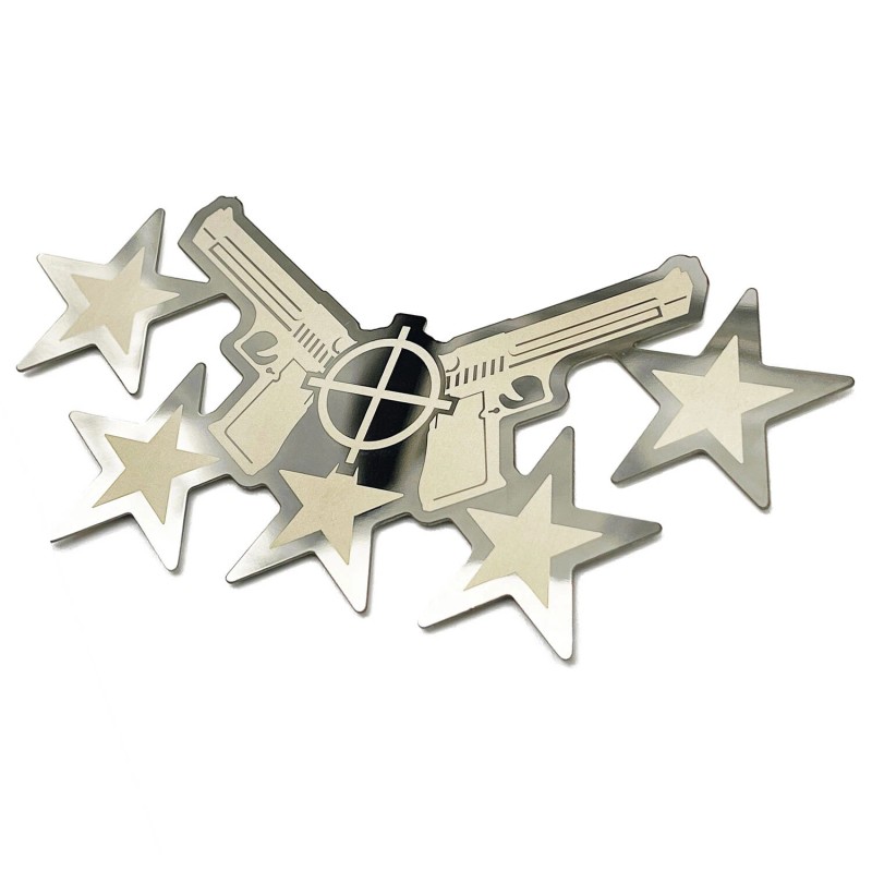 Cobra-Tek Polished Stainless Twin Gun Pistol Badge Emblem 3D Dual Layer Stars Decal
