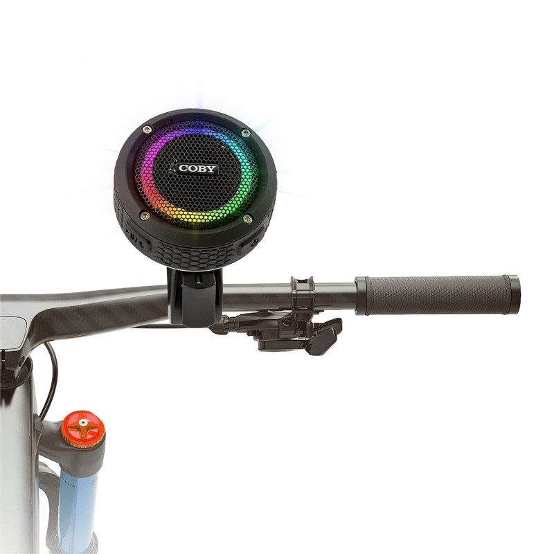 - [SUCTION CUP AND CARIBINER] Rugged and portable, hang the COBY Waterproof True Wireless Speaker up anywhere from the suction cup mount it comes with to turn heads on the dancefloor or mount it to your bike with the carabiner to take to the dusty trails with you.