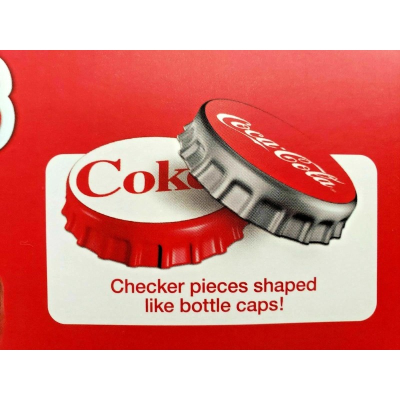 - Features: Official Coca-Cola Licensed Product, Coca-Cola Collectible Checkers Set, Coca-Cola Vintage Art Game Board, Red & Silver Plastic Bottle Cap Checker Pieces, 13" x 21.375" Coca-Cola Design Board, Instruction Sheet, Distributed By MasterPieces, Inc., Family Fun With The World's Favorite Soda, Highly Collectible Novelty Board Game, Classic Game Of Checkers With Novel Pieces