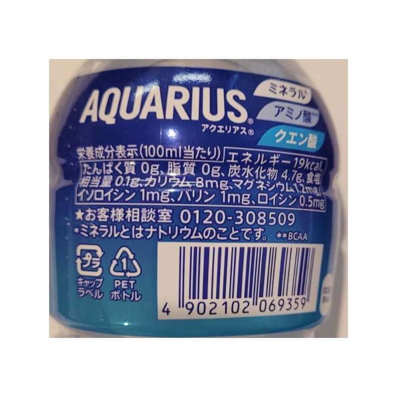 For sale, 6x 500ml PET bottles of Aquarius. Items are purchased new and shipped straight to you with USPS tracking and insurance included. If you purchase more than one order you will only pay the first shipping fee (Flat $5). Aquarius is a refreshing hydration product which uses an osmotic pressure design to quickly deliver the necessary water and minerals to your body.With a refreshing and easy-to-drink aftertaste reminiscent of grapefruit it is also low in calories. It is perfect for active situations, as well as for daily hydration. Nutrition facts label Per 100ml: Energy 19kcal, Fat 0g, Salt equivalent 0.1g, Carbohydrate 4.7g, Protein 0g, Magnesium 1.2mg, Potassium 8mg, Isoleucine 1mg, Valine 1mg, Leucine 0.5mg.Ingredients: Fructose glucose liquid sugar (manufactured in Japan), sodium chloride/citric acid, flavoring, sodium citric acid, K chloride, magnesium sulfate, calcium lactic acid, antioxidant (vitamin C), sweetener (sucralose), isoleucine, valine, leucine. Net contents: 500ml x 6 PET bottles - Product of Japan. Manufacturer: Coca Cola Japan