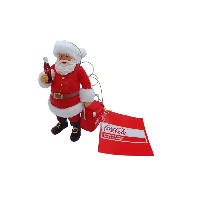 • Part of Kurt Adler's Fabriché collection, this 4.5" Coca-Cola Santa with cooler ornament is a festive addition to any holiday décor.