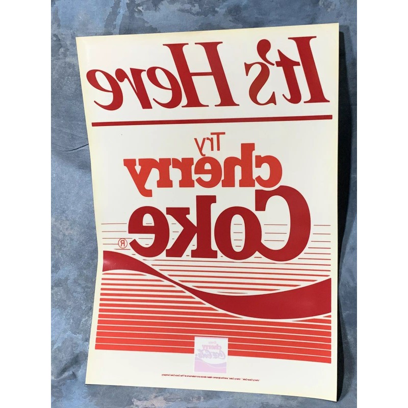 Coca-Cola "It’s Here , Try Cherry Coke" Entry Door Window Cling 12”X17” 1985 Rare NOS !