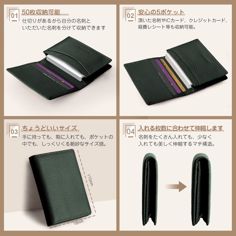 cocall Business Card Holder, Men's, Women's, Business Card Case, Genuine Leather, Large Capacity, Does Not Break Business Cards, Easy to Take Out, Holds 50 Cards, 6 Colors to Choose from, Compact, 5