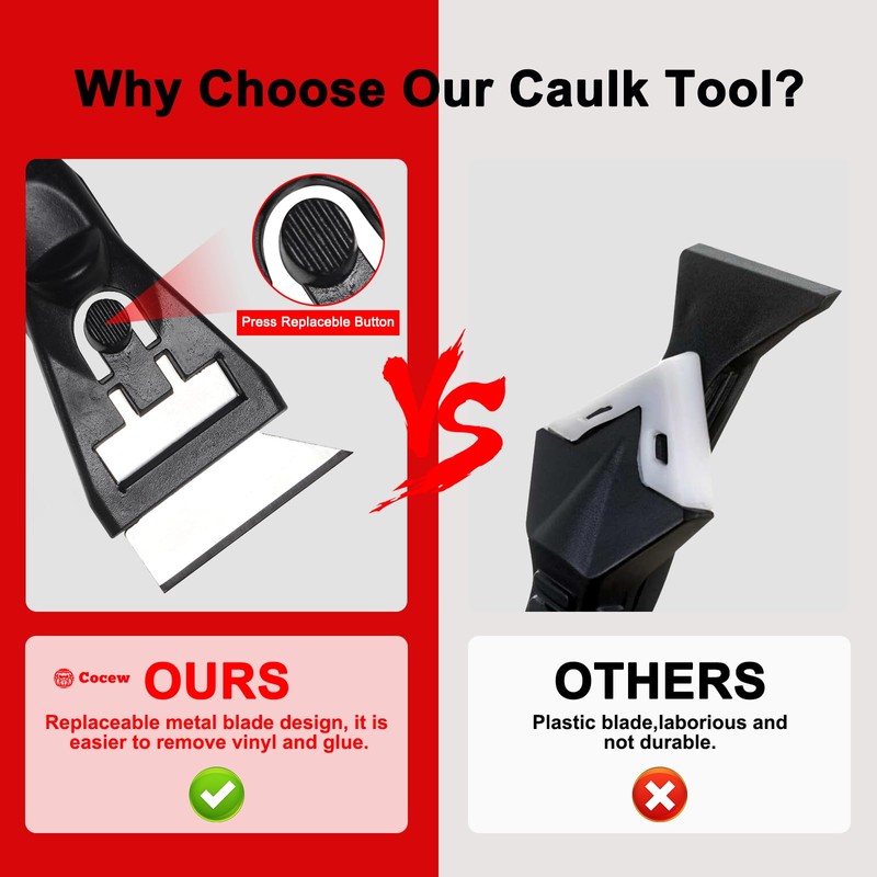 - Multi-angle caulking tool kit - Cocew multi-functional caulking tool kit is a must have tool for your caulking. They can be used to remove old caulk, smoothing caulk, removing surface bumps,repairing drywall.Easy to clean the edges, improve the aesthetic sense of surface.