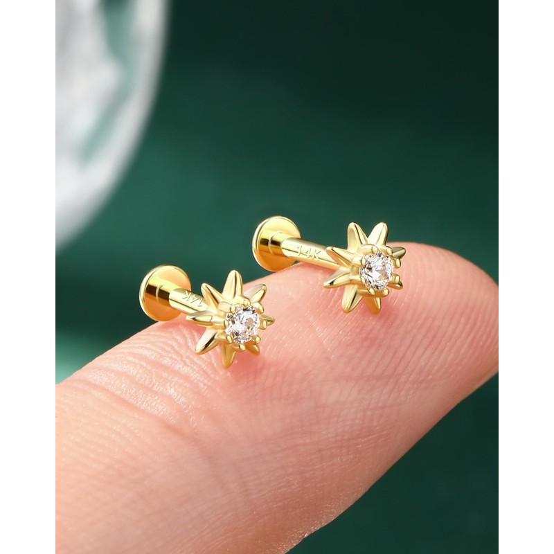 - Value Pack:1Pcs 14k Solid Gold Flat Back Helix Cartilage Tragus Earring Stud; 14K Yellow Gold Sun Tragus Piercing.