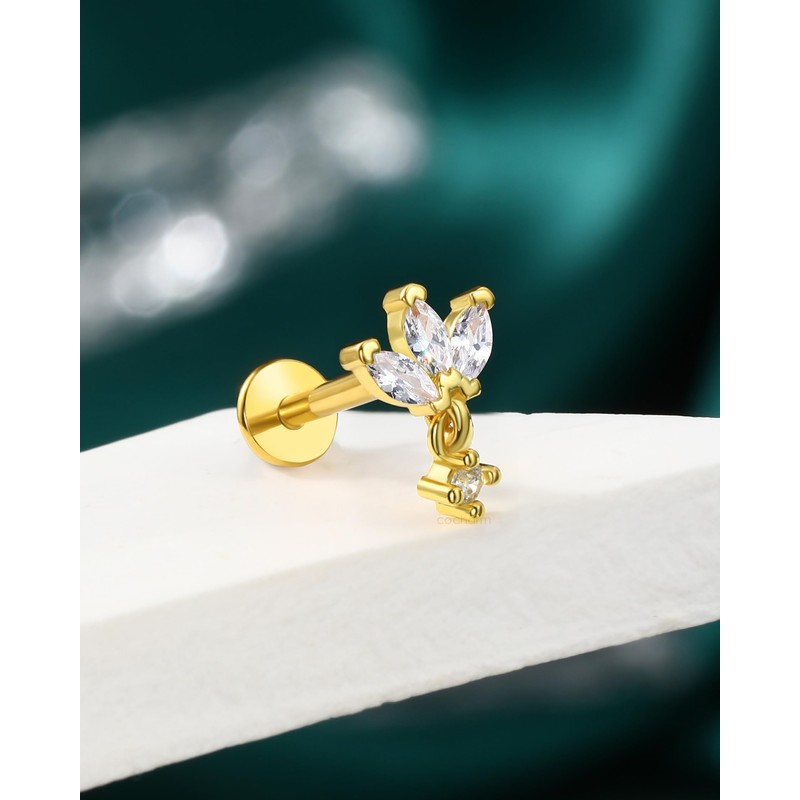 - 【Value Pack】1pcs Gold Lotus Flower Conch Earring Stud 16g 10mm Flat Back Threadless Ear Conch Piercing.