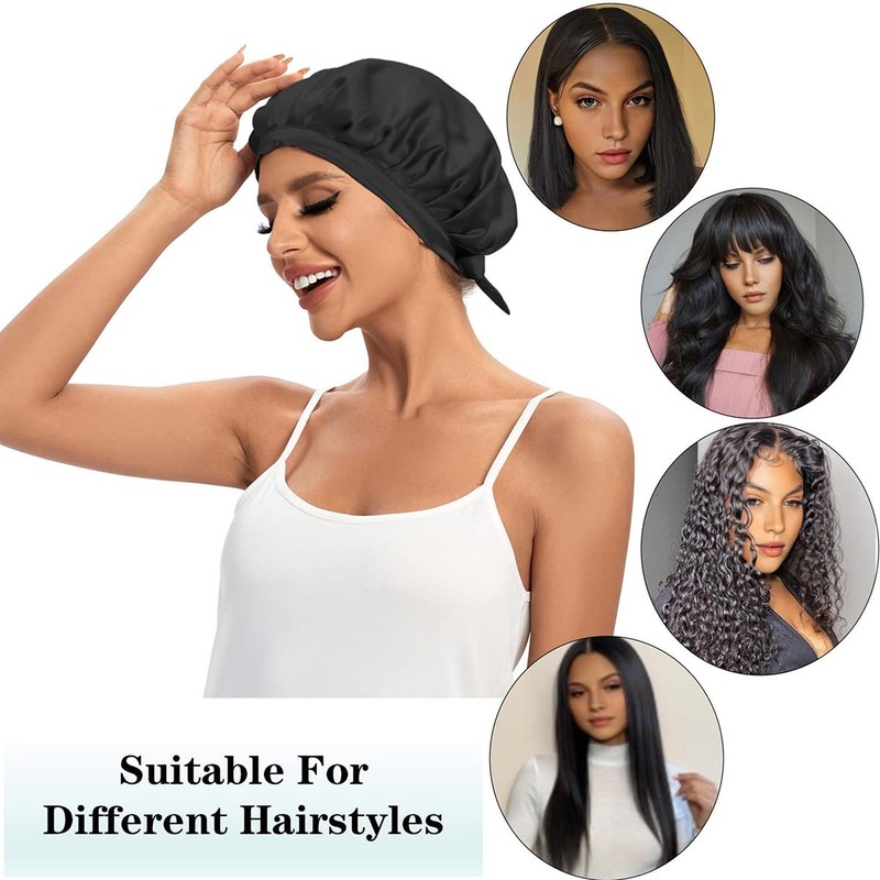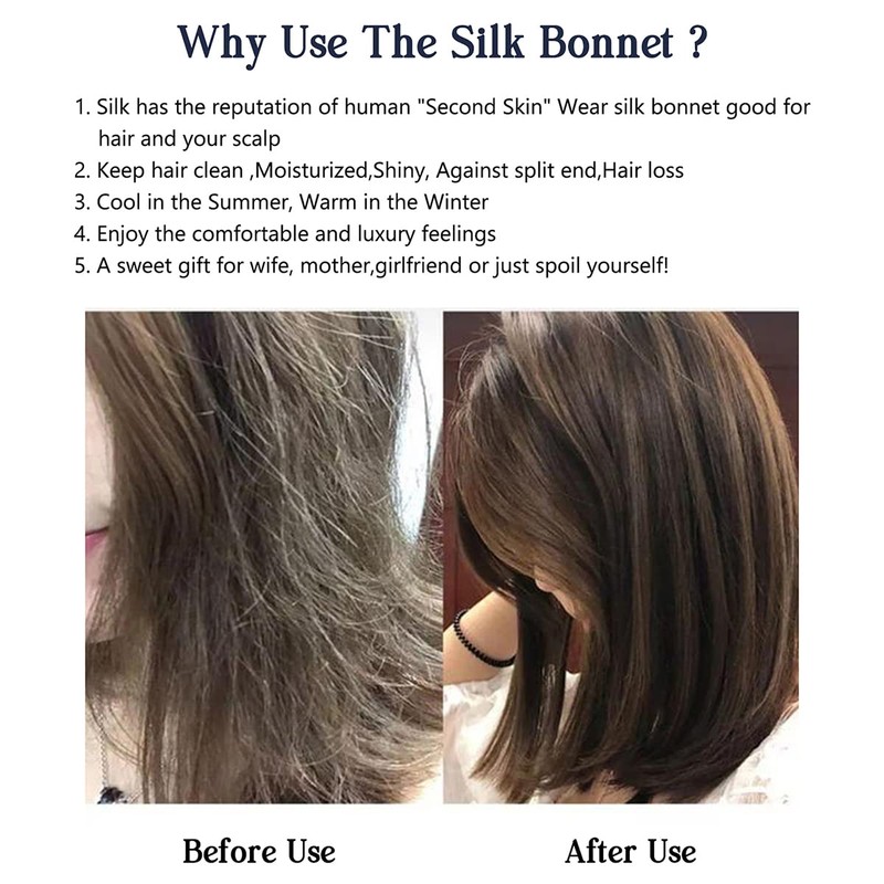 - ❤️ Contexto de uso: ya sea que tengas pelo largo o corto, liso o rizado, el gorro de dormir de seda protegerá tu cabello. Se puede utilizar mientras duermes, haces tareas domésticas, lavas la cara, maquillaje, cuidado de la piel o spa para mantener tu cabello limpio y ordenado.