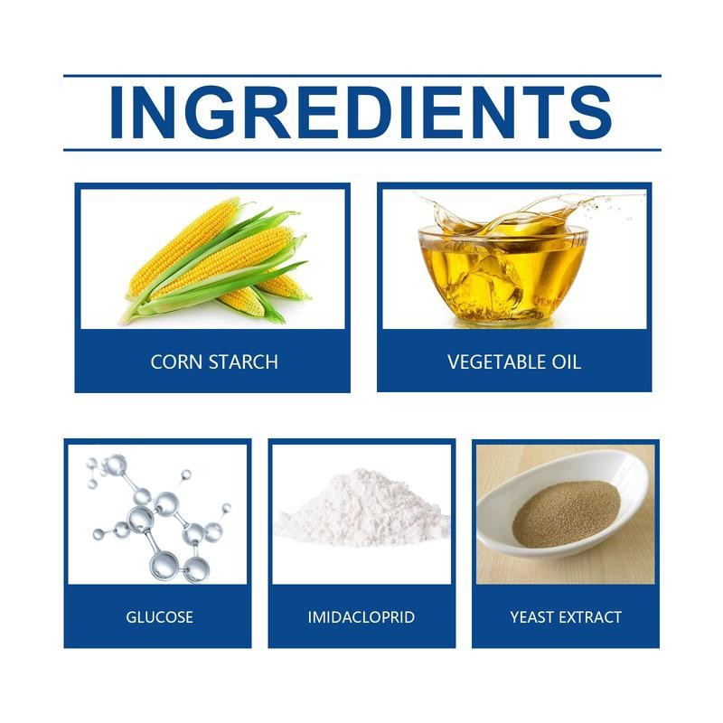 - Our cockroach bait stations contain cornstarch, vegetable oil, and glucose. It can effectively trap and completely destroy cockroaches, unique formula, enhance the trapping effect, cockroaches have nowhere to escape. The ingredients are safe, non-toxic and harmless, friendly to people and pets. Its use is simple: it lasts up to 90 days. Suitable for a variety of places, you can glue the adhesive behind the bait and then place the bait in an area where cockroaches are often seen. Powerful trapping ingredients ensure cockroaches are attracted and destroyed; It remains effective over a long period of time and reduces the chance of cockroaches breeding.