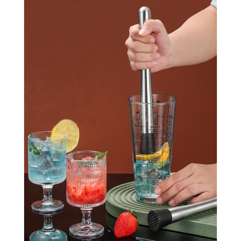 - 【Highly Functional Muddler & Triple Mixing Spoons】 The muddler efficiently crushes ice, fruits, and herbs with its ergonomic grip and textured end. Three dual-ended spoons (spoon + fork) feature a spiral design ideal for layering and mixing cocktails like Mojito or Old Fashioned with ease.