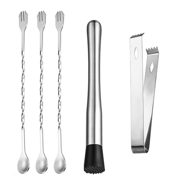 - 【All-in-One Cocktail Tool Set】 This set includes 1 muddler, 3 mixing spoons, and 1 cocktail tong—everything needed to craft professional drinks at home. Perfect for bars, parties, gifts, or daily use.