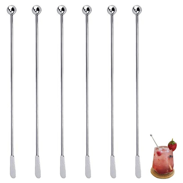 Cocktail Sticks, Swizzle Sticks, Cocktail Stirrers, Multifunctional Swizzle Stick, Reusable Stirrers for the Bar, Suitable for Parties, Clubs, Cafés and Restaurants, 6 Pieces