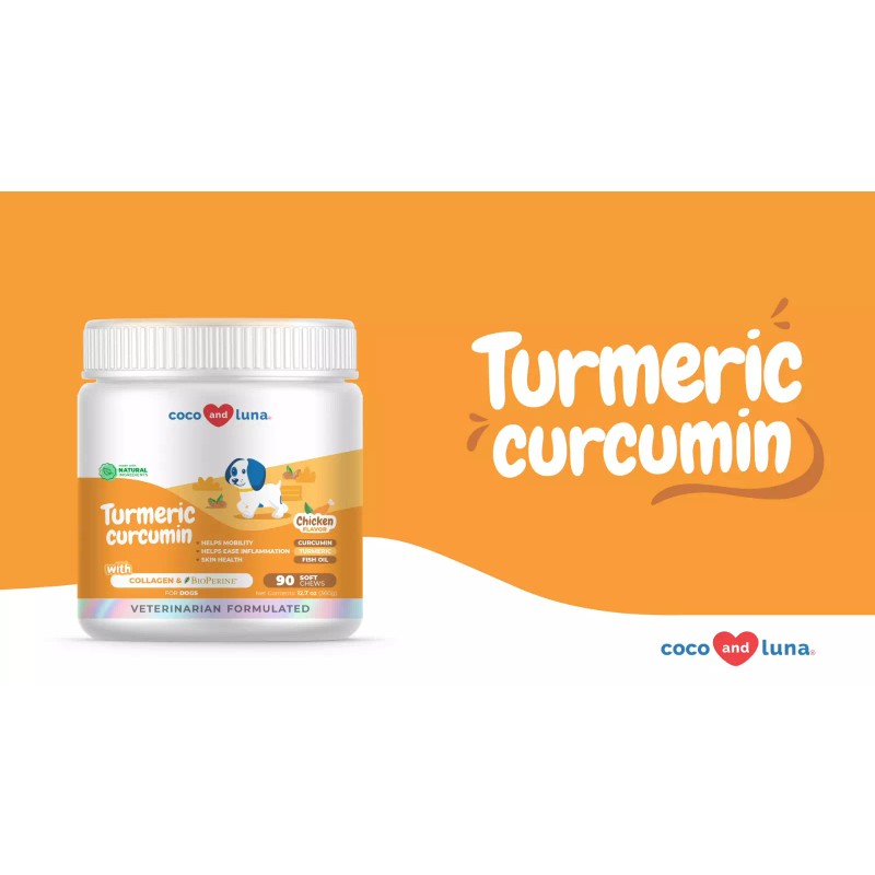- Turmeric for Dogs - Coco and Luna Turmeric supplement contains Curcumin which is an antioxidant that supports joint, hepatic, gastrointestinal and cardiovascular health.