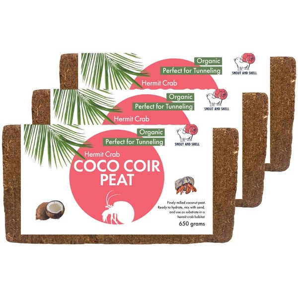 Coco Coir Peat Hermit Crab Substrate Bedding 1.4 lbs - 650 Grams - 3 Pack by Snout and Shell