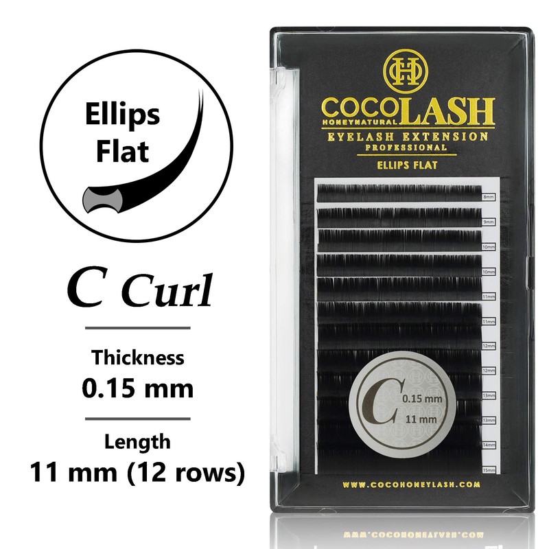 COCO Honey Lash Eyelash Extensions, Ellipse Flat C Curl [0.15mm], Faux Mink Individual Lash Extensions (Length: 11mm)