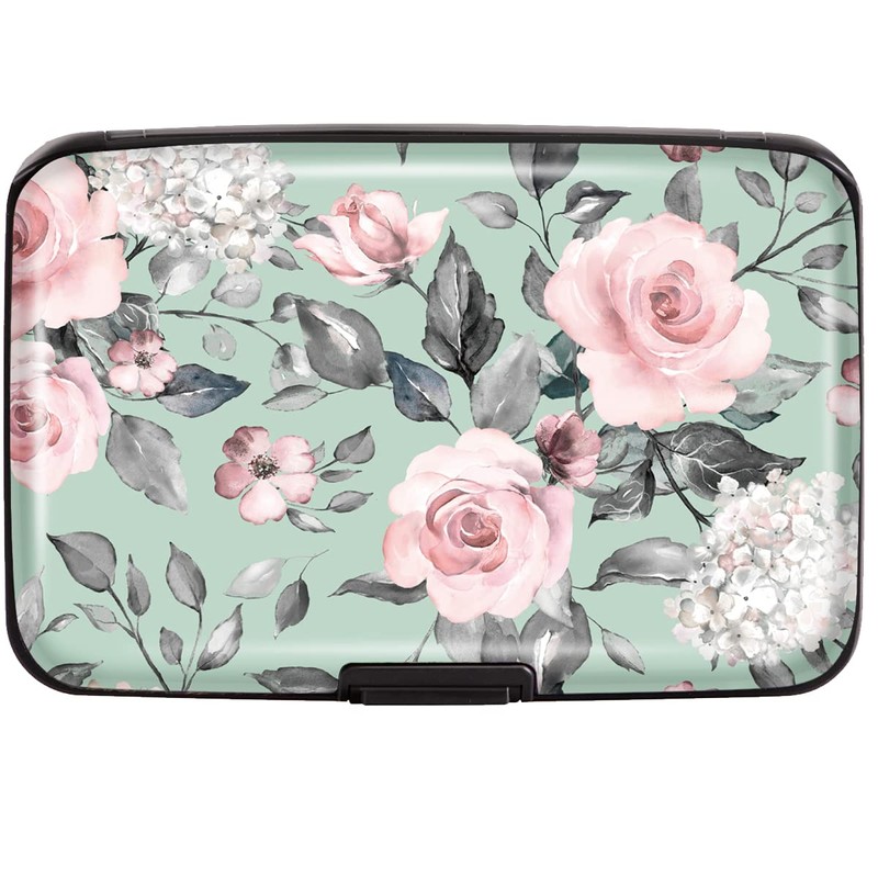 Coco Rossi Mini Credit Card Holder for Women,RFID Blocking Slim Hard Card Case ID Case Travel Wallet, Green Flowers.