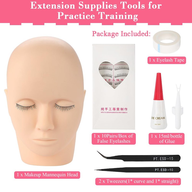 Cocoarm Lashes Kit for Beginner Eyelash Extensions Practice Set Mannequin Training Head False Eyelash Make Up Practice Kit for Makeup Training and Eyelash Graft