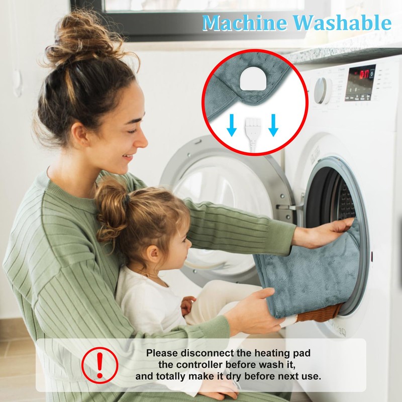 • Convenient and WashableThe original intention of this heating pad is trying to release your hand, make it heat convenient even when you are standing. The heating pad is washable, you can wash it when it get dirty, but please make sure not use it until it is totally dry.