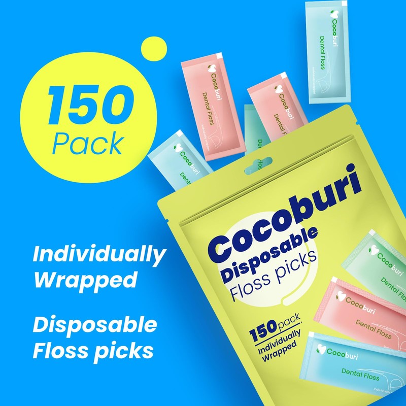 COCOBURI Individually Wrapped Dental Floss Picks-Disposable Floss Picks for Adules-Floss Single Bag-Unflavored Floss Picks-BPA Free-Bulk Floss Sticks-150 Counts