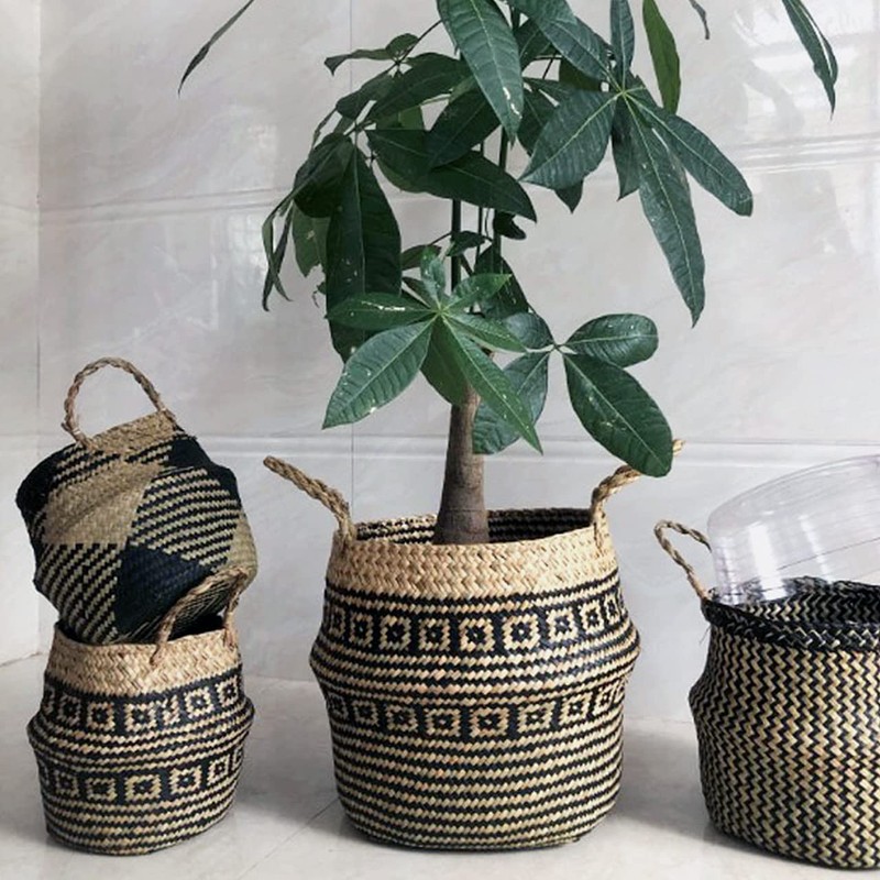 Cocochie Pot Cover, Stylish, No. 5, 6, 7, 8, 9, Basket, Storage, Basket, Foldable, Pot, Straw Basket, Pattern, Black (S)