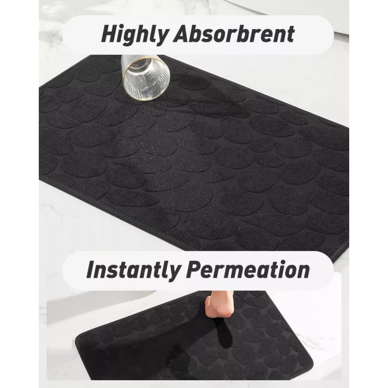 【Multi-Function Bath Rug】Soft cloth, keep you away from wet, ice cold bathroom floor, with an anti-slip rubber layer on the back of the super absorbing towels, our thin bathroom floor mat is both skid resistant and water absorbent