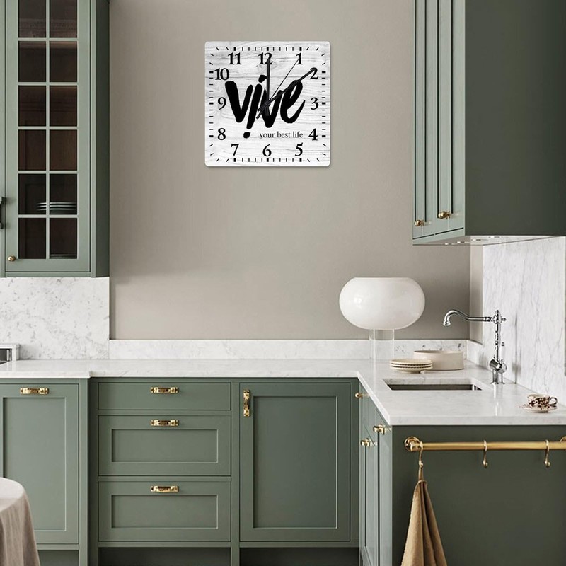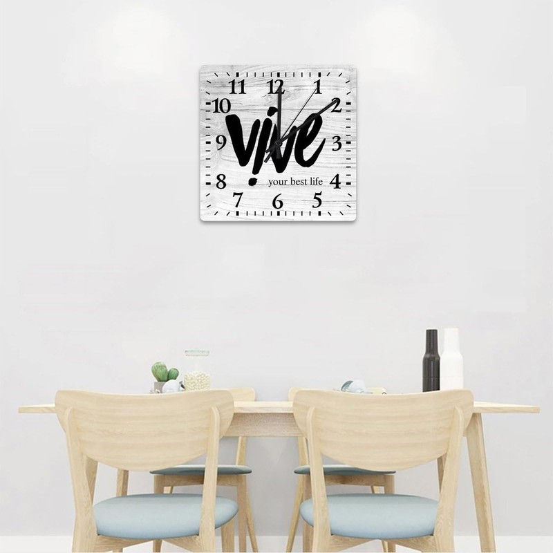 COCOKEN Square Wall Clock Live Your Best Life Large Wall Clock Inspired Quote...