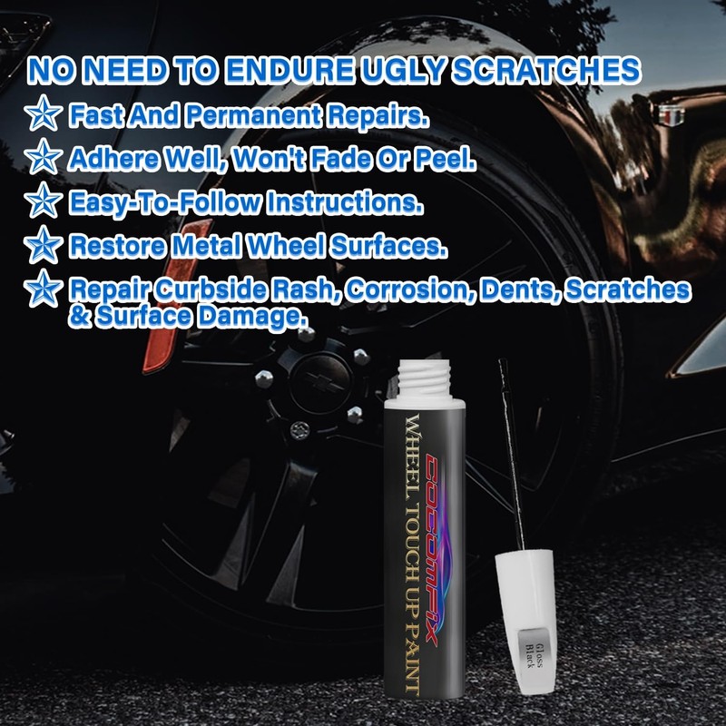 - Perfect smooths scars: Cocomfix high covering black rim paint can completely and naturally hide damages, and the color can blend perfectly into your rim , our gloss black rim touch up paint one can match 90% rim in whole market, you can choose it without doubt