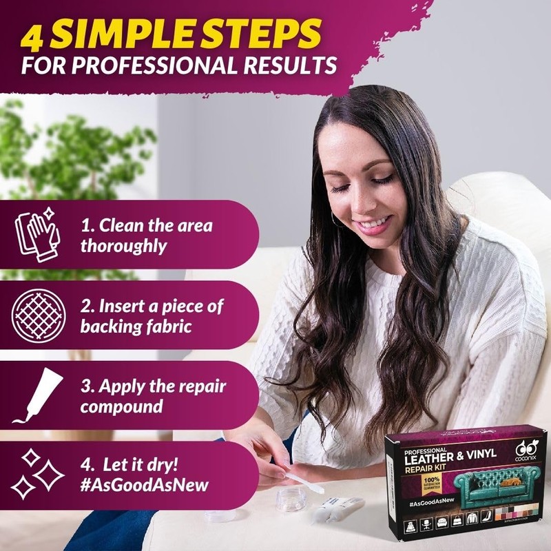 - WORKS ANYWHERE, ON ANYTHING: From leather couches, car seats, and office chairs to shoes, bags, and jackets—whether it’s real leather, faux leather, vinyl, PU, or bonded leather, this kit has you covered.