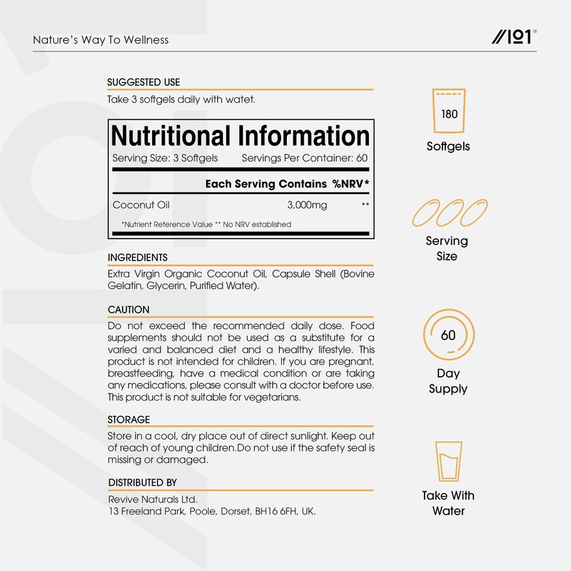 - ✔ PURE COLD-PRESSED COCONUT OIL: Each serving delivers 3,000mg of pure, unrefined Coconut Oil derived from the dried flesh of non-GMO coconuts. Cold-pressed to retain its natural purity and nutritional benefits.