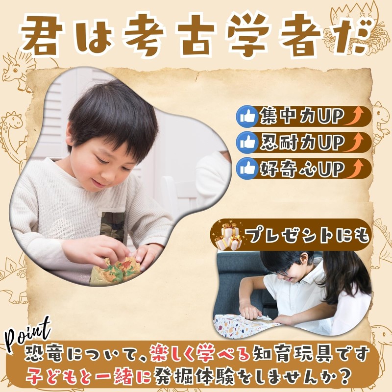 Through the excavation, children can develop concentration and patience, and their interest in palebiology is naturally deep.