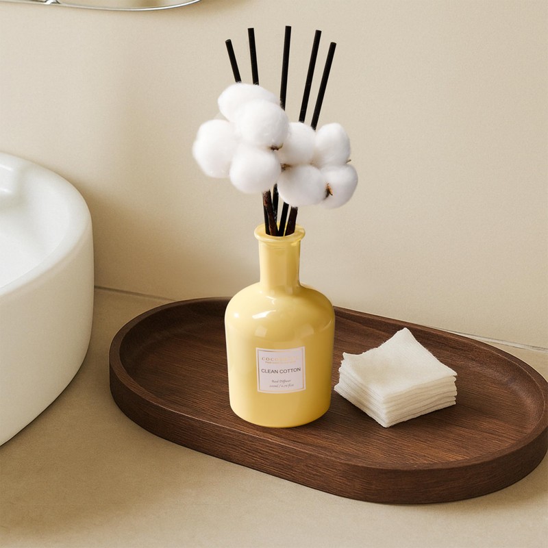 COCORRÍNA Reed Diffuser – Clean Cotton Scent, 6.76 oz Essential Oil, Long-Lasting Fragrance, Decorative Glass Bottle with Real Cotton, Bedroom or Bathroom Décor