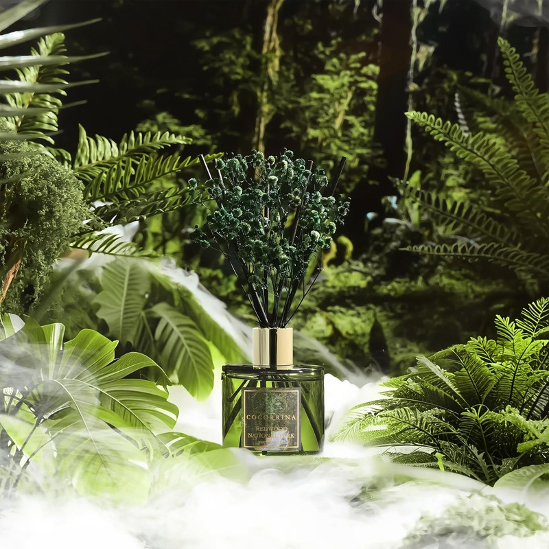 COCORRÍNA Reed Diffuser - Redwood National Park 6.7 Fl.oz Reed Diffuser Set with 8 Sticks & Preserved Baby's Breath, Reed Diffuser for Home Bathroom Shelf Decor