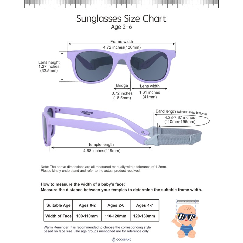 Sunglasses are made of high quality TPE (Thermoplastic Elastomers), strong and highly elastic, non-toxic, food grade, BPA free, safe for babies. Lightweight to wear without squeezing your ears or nose.