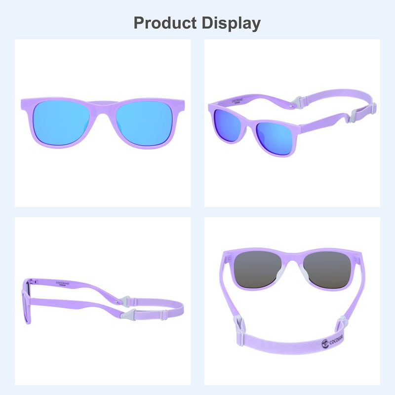 COCOSAND Toddler Baby Sunglasses with Strap Polarized Flexible Square Soft Silicone Nose Pads for Kids Boys Girls Ages 2-6, Heliotrope with Blue Lens