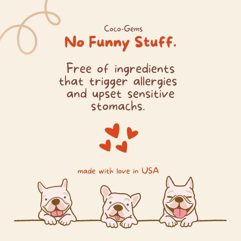 • Pure, simple ingredients. Safe for dogs with allergies and sensitive tummies,