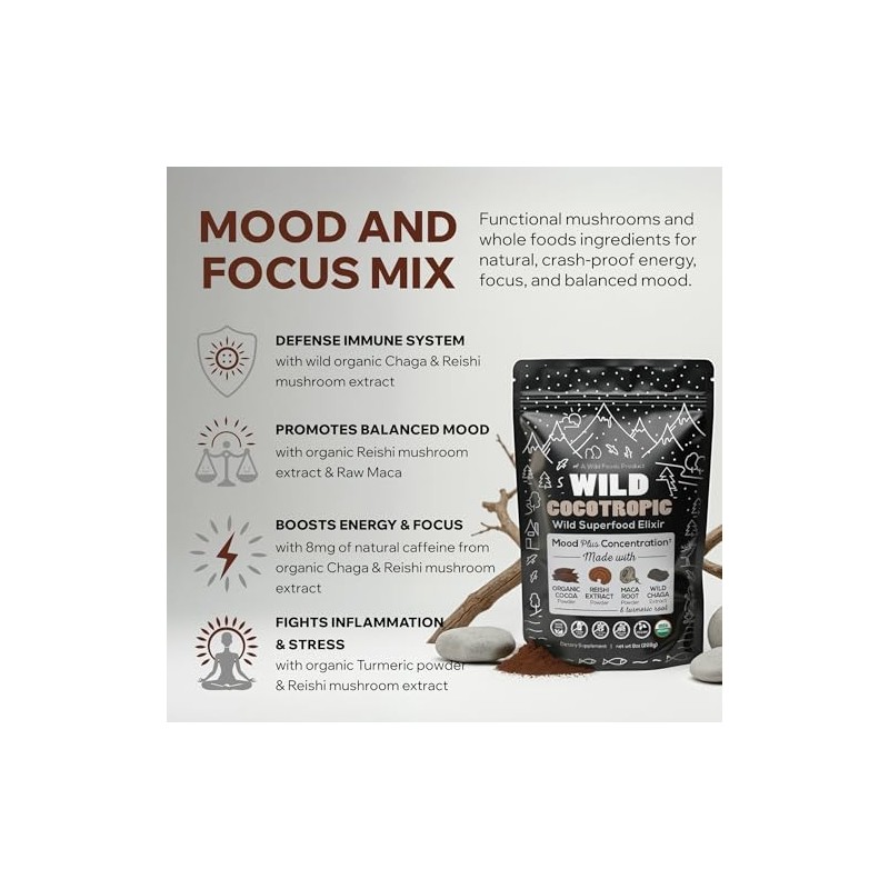 Enjoy a guilt-free indulgence with our Mushroom Cacao Hot Chocolate, featuring only 2g net carbs, 3g fiber, and 100% plant-based ingredients. This blend supports sustained energy and mental clarity without crashes, making it an ideal choice for boosting cognitive performance. Our Super Cocoa Mushroom Coffee Powder is USDA certified, ensuring top-notch quality in every cup. The rich cocoa flavor with reishi is perfect for mornings or as an addition to your favorite baked goods. Complementing this, our Lion’s Mane Powder is sourced from small farms specializing in mushroom cultivation. It is 100% organic, non-GMO, and hand-harvested on hardwood, using fruiting bodies only, for a potent 10:1 concentration through triple hot water extraction. Known for enhancing brain functionality, Lion's Mane supports memory, focus, and mental clarity. This versatile supplement can be easily blended into smoothies, shakes, coffee, or tea, and is free of caffeine, sugar, and fillers, ensuring a pure, healthy addition to your wellness routine.