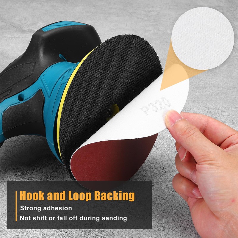 - ★Hook and loop backing: The back of the sanding disc adopts a hook and loop design, which can be quickly and firmly attached to the random orbital sander. It will not shift during the sanding process, and the sandpaper is easy to remove and replace.