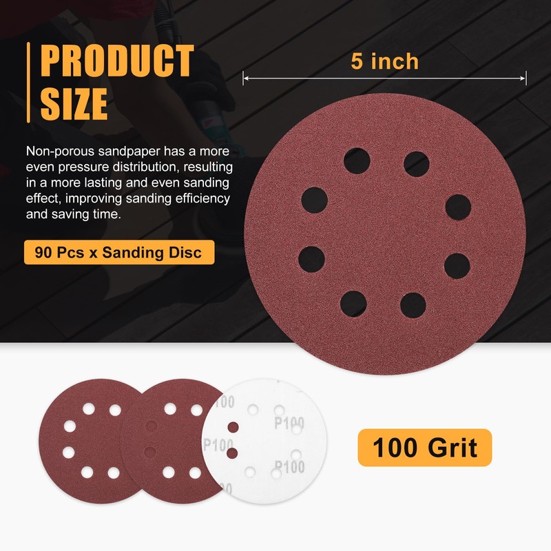 - ★Size: 5 Inch(125 mm) 100 Grit, 90 Pcs in total