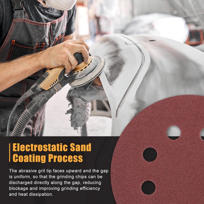 - ★Porous and Efficient Dust Removal: The round sandpaper adopts an 8-hole design to accelerate the discharge of dust, prevent sandpaper clogging, and provide a clear view.(Useful Tips: During the sanding process, if the dust is too heavy, you can spray a small amount of water on the sanding area)