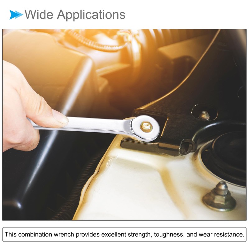 - ★ Carbon Steel --- Crafted from high carbon steel, this combination wrench provides excellent strength, toughness, and wear resistance. The polished, chrome-plated finish not only adds a sleek look but also enhances the tool's resistance to rust and corrosion.