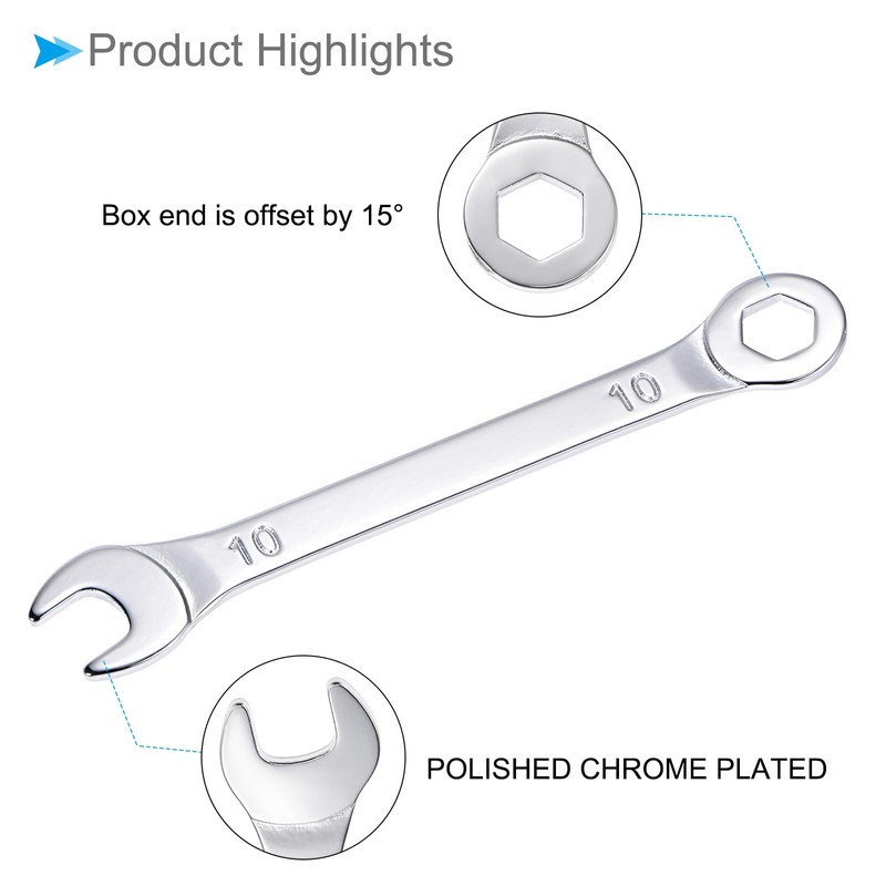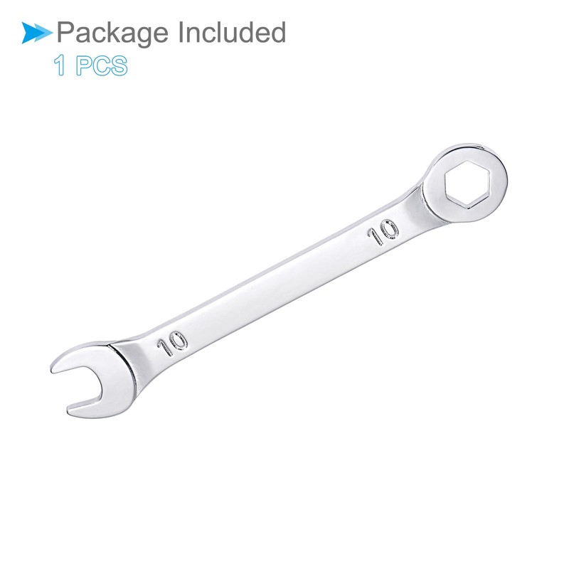 - ★ Combination Wrench Size --- Total Length: 123mm / 4.84", Open End Size: 10mm, Box End Size: 10mm, Material: High Carbon Steel, Finish: Polished, Chrome Plated